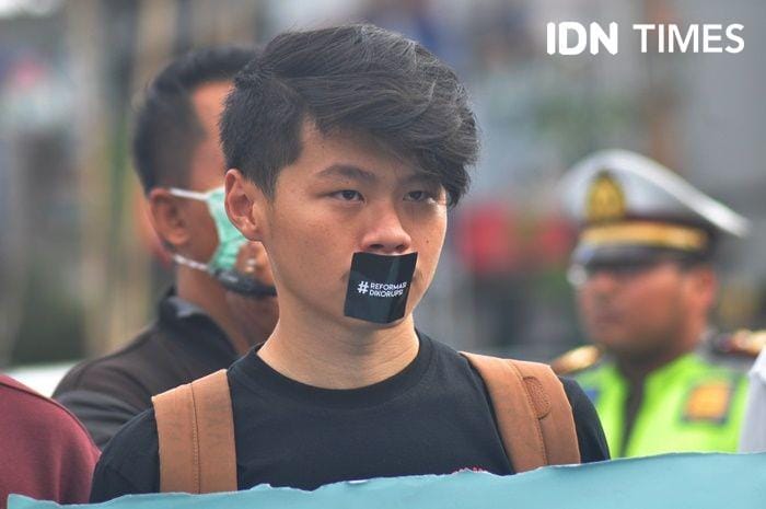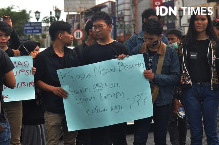 Yogyakarta, IDN Times — Aksi yang digelar Aliansi Jogja Anti Korupsi (AJAK) untuk menolak pelemahan Komisi Pemberantasan Korupsi (KPK) dengan menerbitkan Perppu KPK digelar secara damai dengan cukup banyak kreasi.